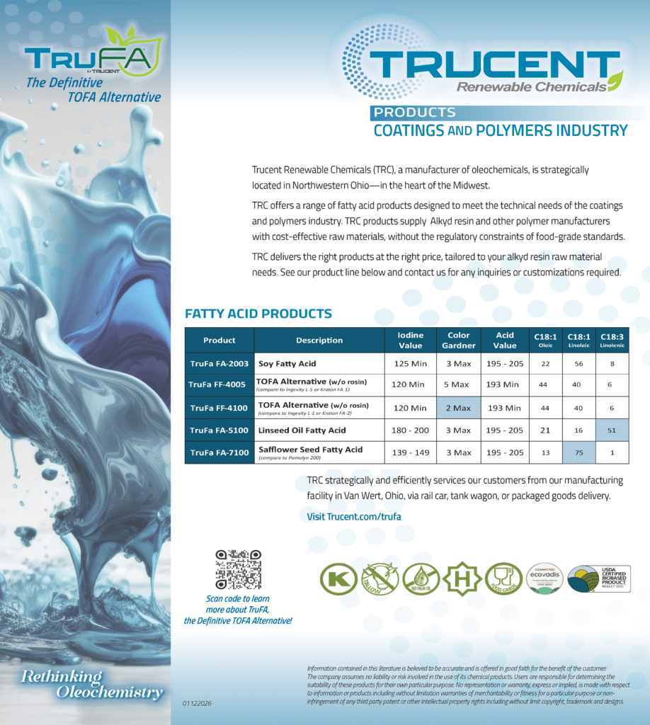 TruFA closely mirrors the attributes of TOFA, providing a seamless transition for industries accustomed to the properties of traditional tall oil fatty acids.